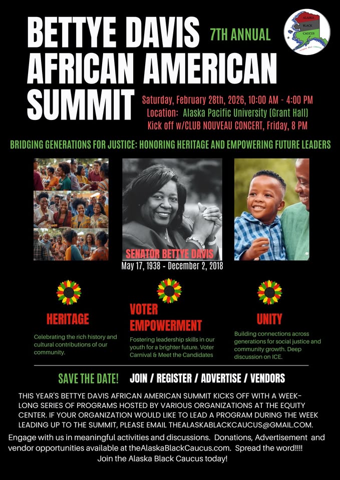 The free 7th annual 2026 Bettye Davis African American Summit was successfully held in celebration of Black History Month on Saturday, February 28th, from 10 AM to 4 PM at Alaska Pacific University (Grant Hall), located at 4101 University Drive. Centered around this year’s theme, “Bridging Generations for Justice: Honoring Heritage and Empowering Future Leaders,” the summit continued the powerful legacy of the late state senator Bettye Davis. The event served as an important platform for the Black community and other people of color to come together, engage in meaningful conversations, and take action toward making Alaska a better place for everyone.